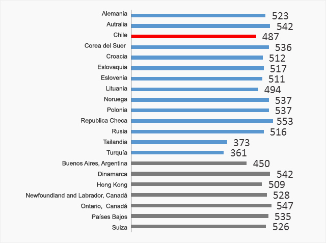 De acuerdo a la evaluación –aplicada por la Asociación Internacional para la Evaluación del Logro Educativo (IEA), en conjunto con la Agencia de Calidad de la Educación–, los estudiantes chilenos obtuvieron 487 puntos, ubicándose por debajo de la media internacional, fijada en 500 puntos.