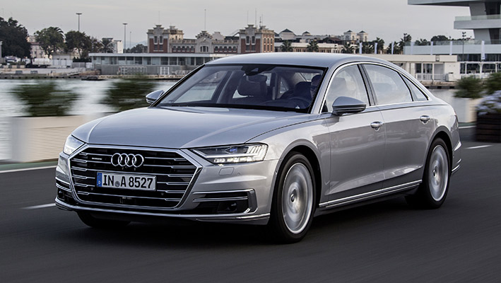 El renovado sedán de lujo de Audi está equipado con asistente de tráfico, tiene 24 sensores de radar, cámara y láser conectados a una computadora que puede encargarse de la dirección, aceleración y frenado hasta 60 km/ en autopistas con barreras que dividen el tráfico direccional. Eso significa que el conductor no tiene que tocar el volante en las congestiones hasta que se requiera un control manual nuevamente. El A8 tiene un nuevo motor V6 turbocargado de 340 caballos de fuerza y 3 litros con un sistema híbrido de gasolina y eléctrico que lo ayuda a acelerar para una mejor economía de combustible y también potencia todas sus características avanzadas.
