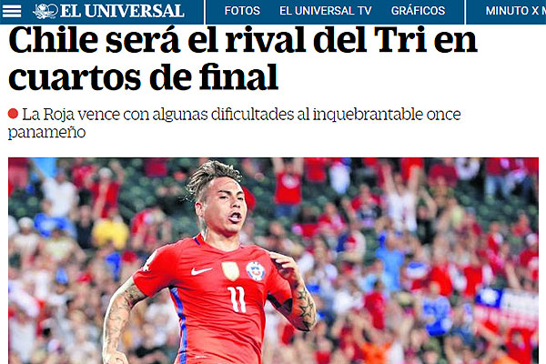"Chile gana, pero no convence. Difícil apostar ahora en Chile para el bis. Por lo menos logró el paso a los cuartos de final (con México el sábado en Santa Clara, California), una empresa que en esta edición del Centenario no pudo lograr Brasil ni Uruguay. Pero tartamudea Chile".