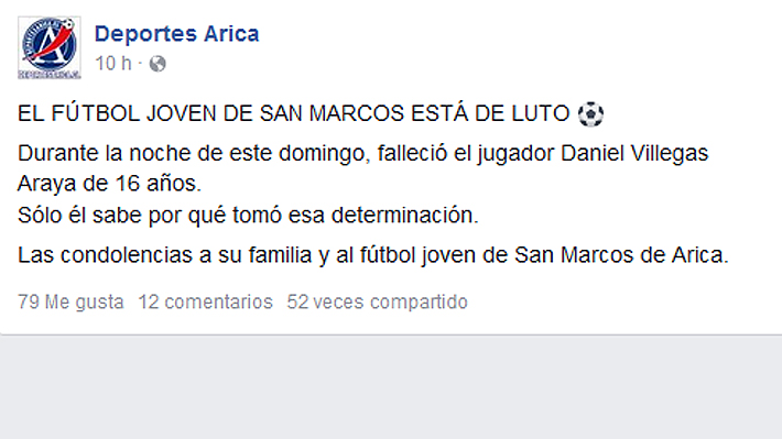 Resulta que la noche de ayer fue encontrado sin vida el joven de 16 años, Daniel Villegas, quien pertenecía a las divisiones menores del elenco nortino.