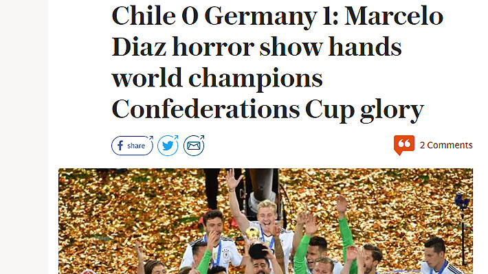 "Chile se va muy decepcionado y con las manos vacías. Fue un terrible error de Marcelo Diaz se sumó a su incapacidad de hacer goles y de3mostrar su dominio en el primer tiempo, donde eran el mejor equipo. Los bicampeones de América desperdiciaron en exceso muchas posibilidades de gol. Chile tuvo el comienzo más brillante y eran claramente el mejor equipo durante la mayor parte del primer período".