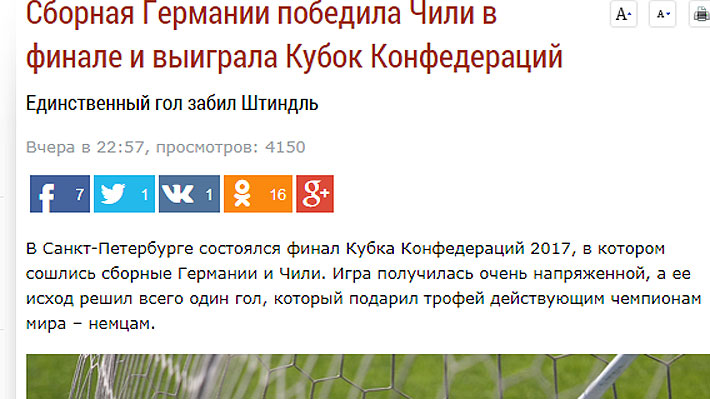 "La final en San Petersburgo fue contra de la generación dorada de Chile y se decidió por un gol de Stindl (el más fácil que pueda creer). No va a sorprender a nadie si Alemania, la verdadera, es campeón del mundo nuevamente".