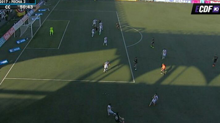 La imagen de la conquista no validada es muy aclaratoria y da cuenta que Rivero al menos está casi un metro habilitado.