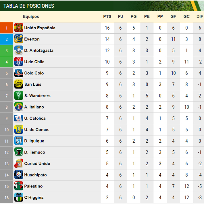 Cabe señalar que tras seis partidos disputados Universidad de Chile se mantiene en la cuarta posición, con 10 puntos, Colo Colo quinto, con nueve, y la UC se estanca en el noveno lugar, con solo siete positivos.