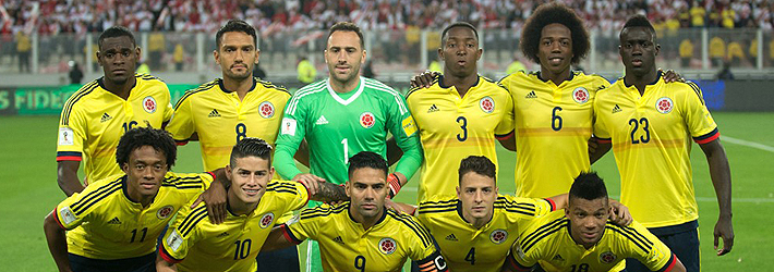 - 11 titular: David Ospina; Johan Mojica, Yerry Mina, Davinson Sánchez, Santiago Arias; Mateus Uribe, Abel Aguilar, Carlos Sánchez, Juan Guillermo Cuadrado, James Rodríguez; Radamel Falcao.