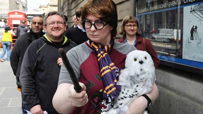 "J. K. Rowling escribió los libros ahí enfrente, y también al final de la calle, así que es divertido disfrazarse ", dijo Francine Millard, de 47 años, visitando la biblioteca con una bufanda como las de Potter y con un búho de juguete.