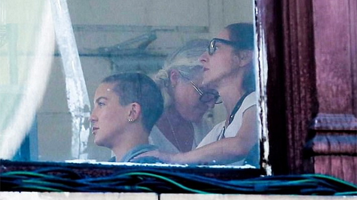 Hudson fue fotografiada por un paparazzi en el set en el que trabaja para "Sister", su nueva película. La actriz fue captada a través de un vidrio sentada para ser maquillada.