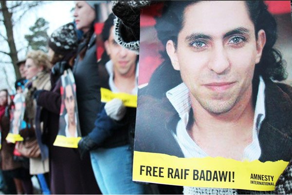 Es un bloguero de Arabia Saudita que fue detenido el 17 de junio de 2012 y acusado de crear un foro online para supuestamente "insultar al islam". En 2014 fue condenado a pagar una multa millonaria, a 10 años de cárcel y a recibir mil latigazos. En enero de 2015, recibió 50 de estos golpes en una plaza pública en la ciudad de Yidda. Su abogado, Waleed Abu al-Khair, también fue condenado a 15 años de presidio. (Crédito foto: Amnistía Internacional)