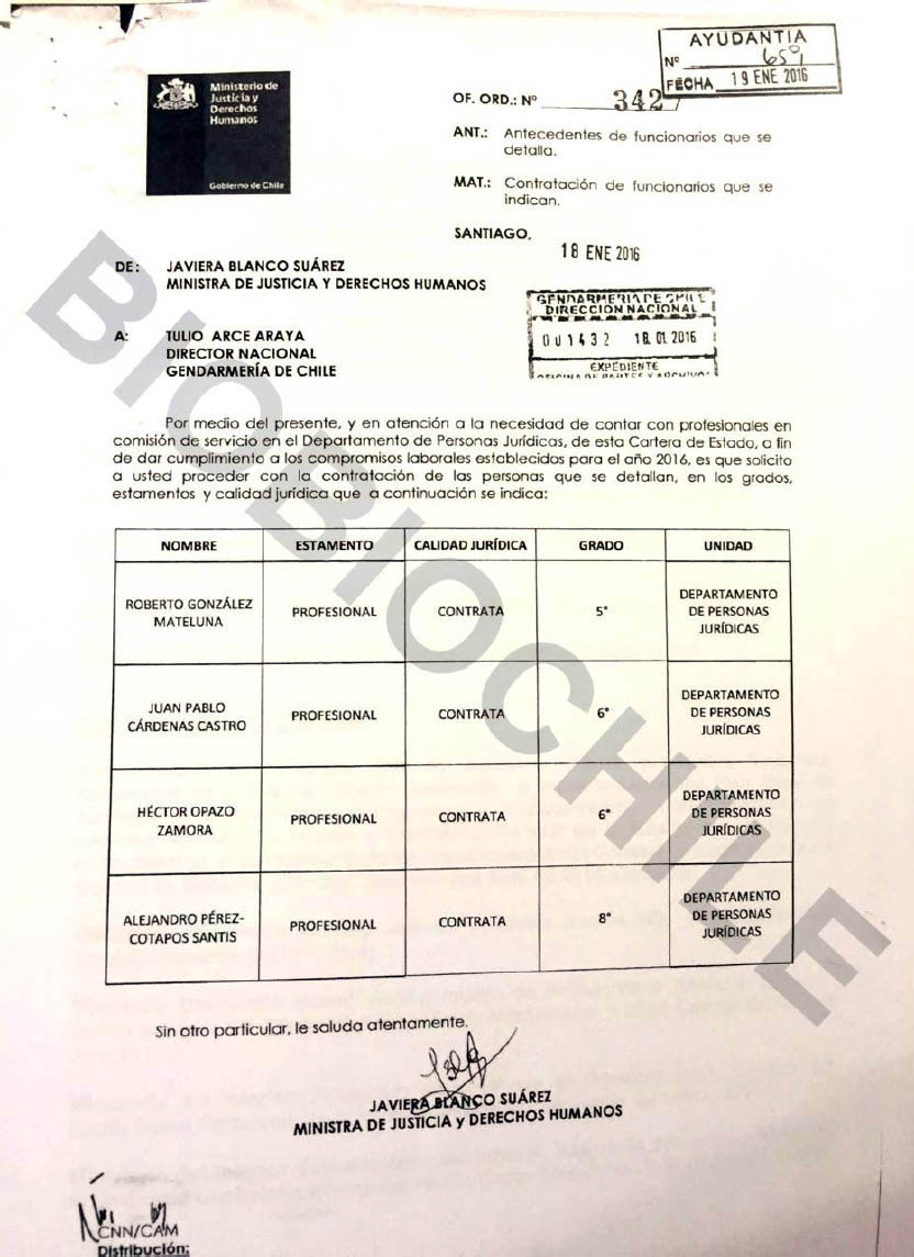 se reveló que ella instruyó al ex director de Gendarmería, Tulio Arce, la contratación de cuatro funcionarios justo después de que ella negara tener participación en este tipo de procesos.