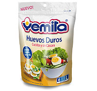 Yemita presenta sus huevos duros sin cáscara que vienen en un formato de bolsa desechable hermética de 6 unidades.