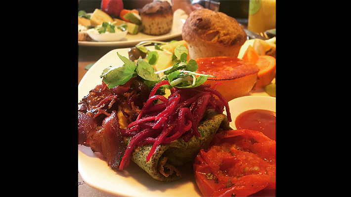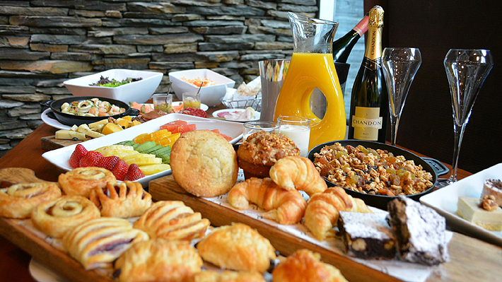 Por otro lado el brunch vegetariano incluye algunos de los platos anteriores, pero agrega huevos revueltos, panqueque, yogurt y dos tipos de queso, entre otras cosas. Y el brunch para los más tentados, incluye una botella de espumante de 200 cc, salmón, cuatro tipos de quesos, láminas de choricillos, jamón serrano crocante, wrap de lechuga y palta más otras delicias que la verdad lo dejaran contento y sin hambre por un buen rato.
