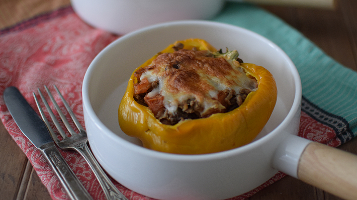 - En una lata aceitada, poner los pimientos a horno medio por media hora. De vez en cuando rociarlos con caldo si fuera necesario.
