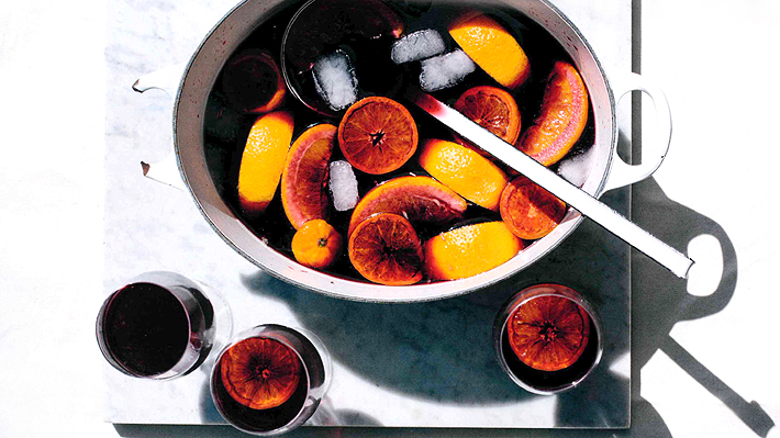 Antes de servir, trasvasijar la preparación a un jarro lindo, agregar hielo y bebida, calculando más menos por cada medida de vino, un tercio de bebida.
