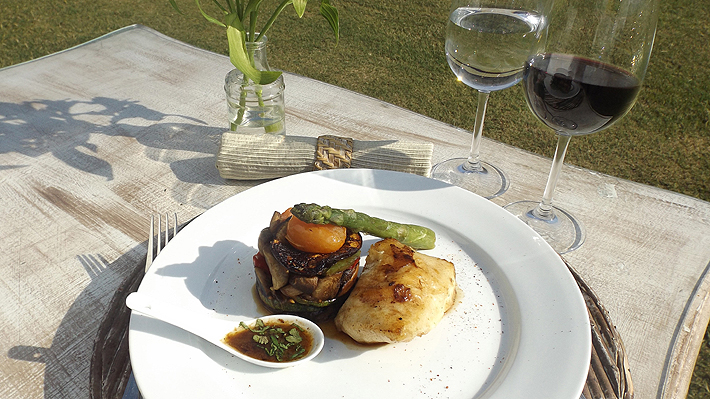 Carménère con mero grillado y vegetales salteados