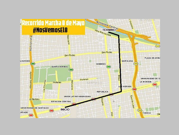 SANTIAGO.- El movimiento estudiantil realiza esta jornada la segunda movilización nacional del año, para reivindicar sus demandas de educación gratuita garantizada por el Estado y fin al lucro en todo el sistema educacional. Esta vez, la marcha también está marcada por la situación de numerosos universitarios que perdieron sus becas y créditos luego que el Ministerio de Educación reevaluara sus antecedentes económicos, y por un inédito recorrido, que comienza en la Usach y termina en el Parque de Los Reyes.