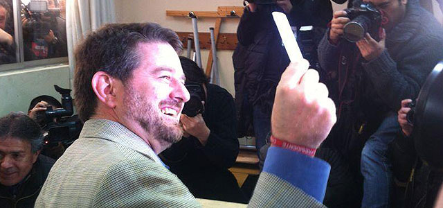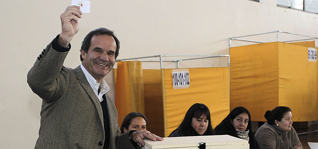 9:01.- Longueira muestra su voto y lo coloca en la urna en la Escuela Salvador Sanfuentes en Providencia. Es la primera persona en sufragar en ese centro de votación.