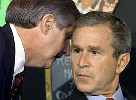 cuando el jefe del staff de la Casa Blanca, Andrew Card, se acerca a su lado