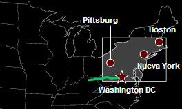 08:20 AA 77 en Washington Desde el aeropuerto de Dulles en Washington DC despega el vuelo 77 de American Airlines con destino a Los Ángeles. De los 64 pasajeros que abordan el Boeing 757, cinco son terroristas.
