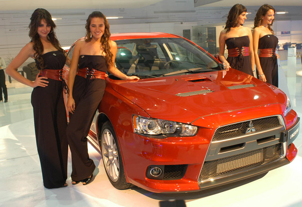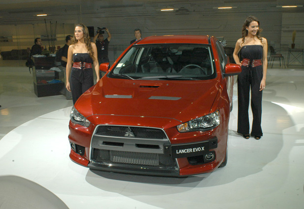 La marca japonesa presentó su vanguardia tecnológica en al forma del auto eléctrico iMiev, aunque sólo con fines de exhibición. Para la venta está el espectacular lancer Evolution X y el Lancer R hatchback.