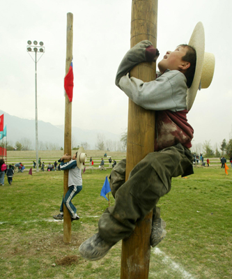ste tradicional juego chileno, mezcla de prácticas europeas y americanas, consiste en tratar de subir un palo enterrado de aproximadamente 20 centímetros de diámetro y de 5 a 6 metros de alto, pero con la dificultad de estar untado en grasa o recubierto con aceite.