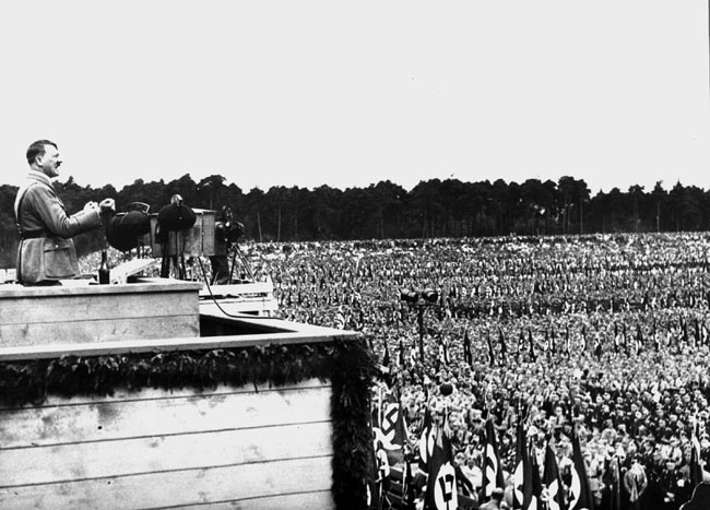 El Führer contaba en un principio sólo con su voz. No tenía más méritos. Ni cuna, ni educación, ni experiencia política. Ni siquiera era ciudadano alemán. Su libro “Mi lucha” -en el que exponía su ideario- no lo hizo conocido, sino que fue al revés, se difundió una vez que él alcanzó notoriedad con su habilidad para la oratoria. Su extraordinario poder demagógico sobre las masas, con el sólo manejo de su voz, hacen de Hitler un maestro de la persuasión.