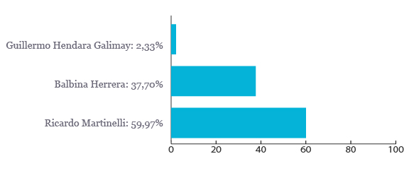 La candidata Balbina Herrera alcanzó un 37,68% de las preferencias y Guillermo Endara 2,33%.