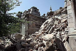 Fuente: Carlos Padilla, El Mercurio.El añoso Cementerio General de Santiago no se salvó del fuerte movimiento telúrico.