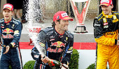 El podio lo completó su compañero de equipo de Red Bull y actual líder, Mark Webber, seguido por el español de Ferrari, Fernando Alonso.