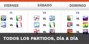 | Uruguay | 0 - 0 | Francia | 11/06 - Relato | Fotos | Ciudad del Cabo | ||