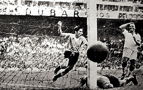 En la foto, el uruguayo Alcides Ghiggia anota dándole el título a su