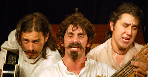 Aquí tres actores-narradores-músicos nos relatan los acontecimientos, encarnan los diversos personajes, organizan juegos bufos y mímicos, producen los ruidos ambientales, cantan canciones que comentan los hechos y tocan la música incidental con al menos 18 instrumentos (de cuerdas, viento y percusión) que circundan el escenario. Espectáculo popular y gozoso sin dejar de ser lúcido, la música ocupa en él un lugar clave.