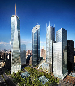 La torre principal se llamará One World Trade Center, tendrá 104 pisos y medirá 541 m. de altura. Será la segunda más alta del mundo, después del Burj Khalifa, en Dubai.