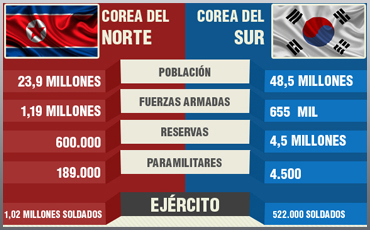 Infografía: Las fuerzas militares de las Coreas frente a frente