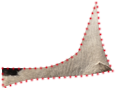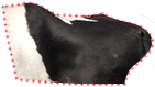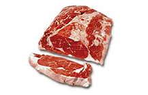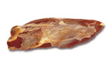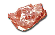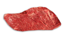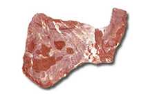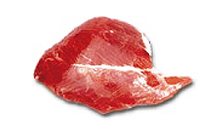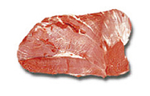 Corte triangular plano, fibroso, de color rojo oscuro. Es de los con mayor infiltración de grasa.
