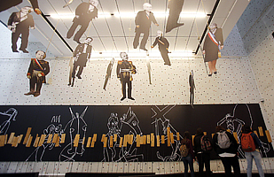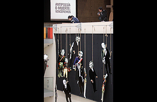 Mayores cuotas de polémica, en tanto, habría en la muestra "Obras públicas", cinco años después, y todo gracias a la instalación "El pago de Chile", que representó a todos los presidentes de la historia republicana del país, colgados cual horca.