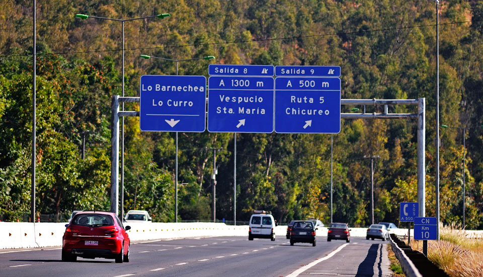 Características: Cruza once comunas de la Región Metropolitana y permite transitar la ciudad de Oriente a Poniente en sólo 22 minutos. Posee un sistema electrónico de peaje basado en tecnología de flujo libre (free flow), que permite realizar el cobro sin necesidad de detención de los vehículos.