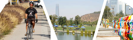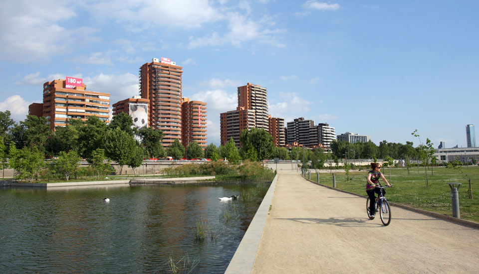 Se ubica en la comuna de Vitacura. El terreno en donde se construyó estaba abandonado y fue recuperado con la idea de generar áreas verdes y un lugar de encuentro. “Ha tenido un impacto importante a nivel metropolitano agregando un número importante de hectáreas, ha generado un nuevo destino de la ciudad y también ha permitido que parte importante de las personas que viven en el sector salgan del encierro de sus hogares”, dice Pablo Allard, decano de la Facultad de Arquitectura de la UDD.