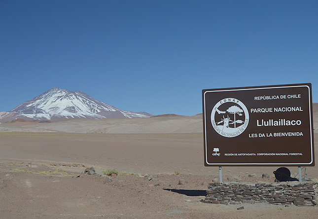 Esa montaña le da el nombre desde 1995 a uno de los dos parques nacionales de la región de Antofagasta. Enclavado entre la Cordillera Domeyko y la de los Andes -a una altura sobre los cuatro mil metros sobre el nivel del mar- esta área protegida cuenta con uno de los accesos más complicados y mal señalizados para un visitante común y corriente. Por eso, el sólo hecho de intentar llegar en un 4x4 es una experiencia recomendable para los aventureros. Luego de seguir las instrucciones básicas que entregan las pocas guías de parques que existen en Chile, que básicamente señalan que hay que tomar la ruta que conduce a la Minera Escondida y luego desviarse rumbo al paso internacional Socompa. Después viene lo complicado: en un punto entre las quebradas Zorras y Zorritas hay que comenzar a probar suerte con las indicaciones que se contradicen y con los consejos de los trabajadores que pocas veces tienen idea de la existencia del lugar. Al final es seguir huellas por la mitad del desierto con el volcán como punto de referencia y tener la suerte que te vayan enrielando hacia la entrada del parque. Ahí, un cartel te da la bienvenida y las señalizaciones de Conaf guían perfectamente hacia los distintos sectores de una zona que tiene 268 mil hectáreas.