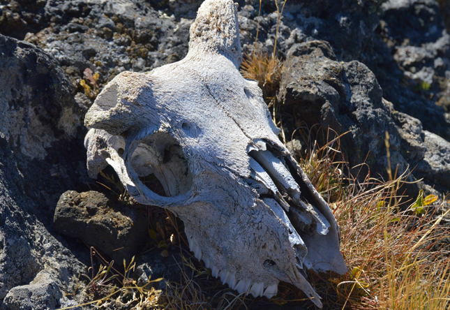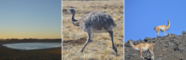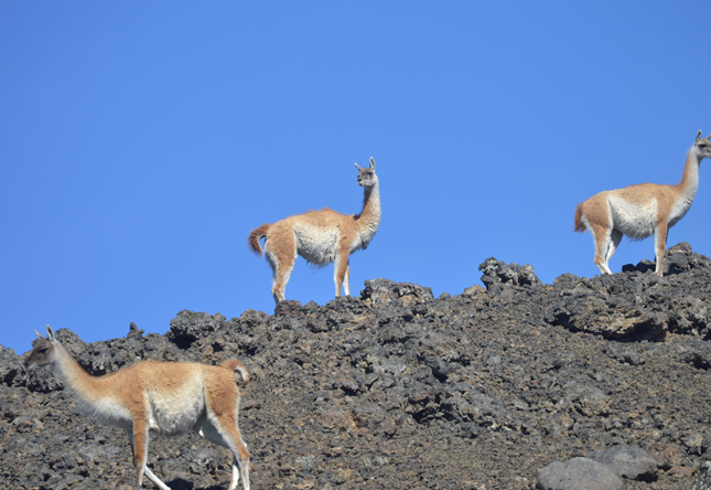 Los libros-guías extranjeros y nacionales llenan las descripciones de las zonas protegidas del país con nombres de mamíferos que jamás serán vistos ni escuchados. Con suerte aparecen los guanacos, uno que otro zorro y si se anda en uno de esos días únicos aparecerá un pudú que al sólo mirarlo huirá a los brincos. En el Pali Aike es diferente. La geografía plana del lugar no da espacio para demasiados escondites más que el camuflaje. Ahí los esqueletos de guanacos están a plena vista y los cadáveres más frescos son disfrutados por zorros o aves de rapiña que se alimentan de las sobras del puma. Los chingues o zorrillos, los armadillos, las águilas y los ñandúes no son literatura. Se puede caminar cerca de ellos, fotografiarlos con la luna de fondo y el paisaje rojizo que toma la pampa al atardecer. Se puede caminar por los comederos de pumas –obviamente tomando el resguardo de que el felino no esté ahí- y jugar a adivinar de qué mamífero son los huesos o los cráneos. Es la naturaleza en estado real y sin pagar los miles de dólares que cuesta salir a África; son mil pesos la entrada y el silencio necesario en un parque que en 2014 no alcanzó a recibir dos mil visitas. Un desconocido safari hecho en Chile que se ve amenazado por la escasa protección de las autoridades hacia una práctica humana igual o más salvaje que los animales del Pali Aike.