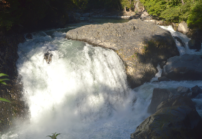 Los senderos para chilenos de los que habla el guardaparques tienen alrededor de un kilómetro con algo de pendiente, y entre ir y volver, como bien dice, no toman más de una hora y media. En lo que se queda un poco corto es en lo de las buenas fotos. Para alguien que vive en una ciudad o en una zona más urbana, poder observar de cerca saltos como el del Indio o la Princesa, bañarse en el pozón que se forma tras la caída del Salto del Pudú –una cascada de cerca de 10 metros- o subir hasta el Mirador del Puma y contemplar el Volcán Puyehue rodeado por valles kilométricos de bosque nativo es, a lo menos, novedoso. Y para muchos si eso se logra caminando poco, mejor.