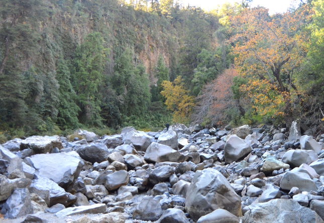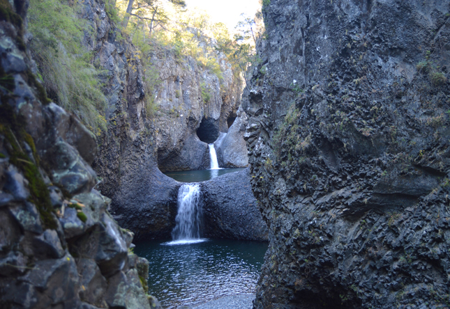 4- 26 de diciembre del 2012 y las réplicas del terremoto del 27-F seguían afectando a la zona centro sur del país. Esa tarde debido a los constantes sismos se generó una grieta en las formaciones rocosas de las Siete Tazas y el agua volvió a desaparecer rápidamente, como si le hubiesen quitado el tapón a esa parte del río Claro. “Ese día fui a dejar a los trabajadores a Molina y cuando volví en la noche el ruido del agua había desaparecido. Fue lo mismo que para el terremoto y como ya estábamos en verano la recuperación, por la falta de agua, fue mucho más lento. Igualmente aquí, haya o no temblores, en enero y febrero el agua que corre es muy poca debido a la sequía”, explica Héctor Carrasco, administrador del parque nacional y funcionario Conaf en la zona desde el 2009. Ese sería un nuevo verano sin agua turquesa para disfrutar.