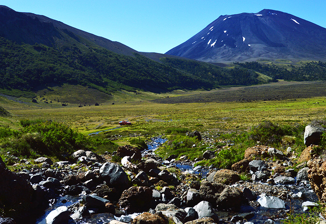 Al bajar del volcán, el sol cae en este valle sin nombre y segundo a segundo la sombra se va comiendo todo el paisaje. Esa transición es para contemplarla: sentarse en una roca y ver como el negro del Lonquimay se vuelve aún más negro y el riachuelo hace de centro de reunión para las aves que buscan el último refresco antes que termine la jornada. Son solamente unas cuantas hectáreas que parecen invisibles al lado de las más de seis mil que tiene el parque nacional, pero como una perla que se esconde en el océano, la recompensa al encontrar este pequeño lugar es millonaria.
