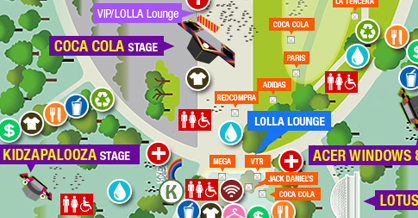 La ubicación de los escenarios y todos los servicios necesarios para disfrutar Lollapalooza este año.