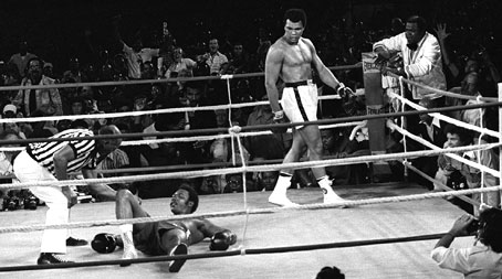 Hasta que llegaron al octavo asalto y Alí consiguió lo que estaba buscando. Un impecable intercambio de golpes contra una esquina terminó con una derecha que mandó a Foreman directo a la lona en el más famoso K.O. de todos los tiempos.