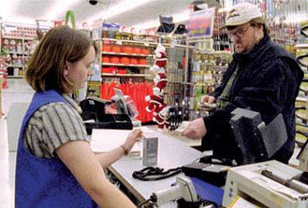 Moore se encarga de mostrar una y otra vez a lo largo del documental lo fácil que es conseguir armas y municiones para los estadounidenses.