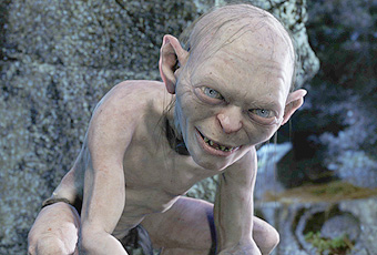 Este es Gollum. Personaje que sólo era un recuerdo o una sombra lejana en la primera película y que ahora tendrá un importante papel en "Las Dos Torres". Su creación se logró gracias al trabajo de la compañía de efectos especiales Weta.