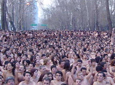 Luego se pidió a la desnuda multitud que se trasladara hasta la Avenida Costanera, a las 9:05 AM, en donde los cuerpos se recostaron en la calle y tras varios gritos e instrucciones a las 9:30 se tomó la segunda foto.