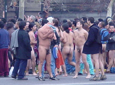 Hubo varios minutos en que la gente no se decidía en sacarse su ropa y dejarla abandonada por ahí. Pero el llamado de desnudarse, finalmente fue inminente.