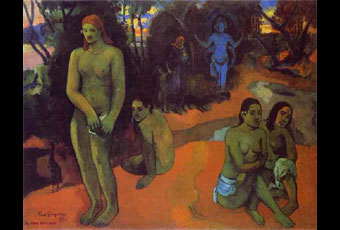 En los últimos años de su vida, Gauguin reemplaza las escenas de la vida cotidiana por otras con imágenes rituales.
