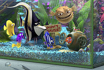 Nemo, luego de ser atrapado en el Gran Arrecife de Coral en Australia, es llevado a su nuevo "hogar": la pecera de un dentista, donde conoce a un grupo de particulares peces, un poco locos, pero que lo ayudarán a tratar de escapar.